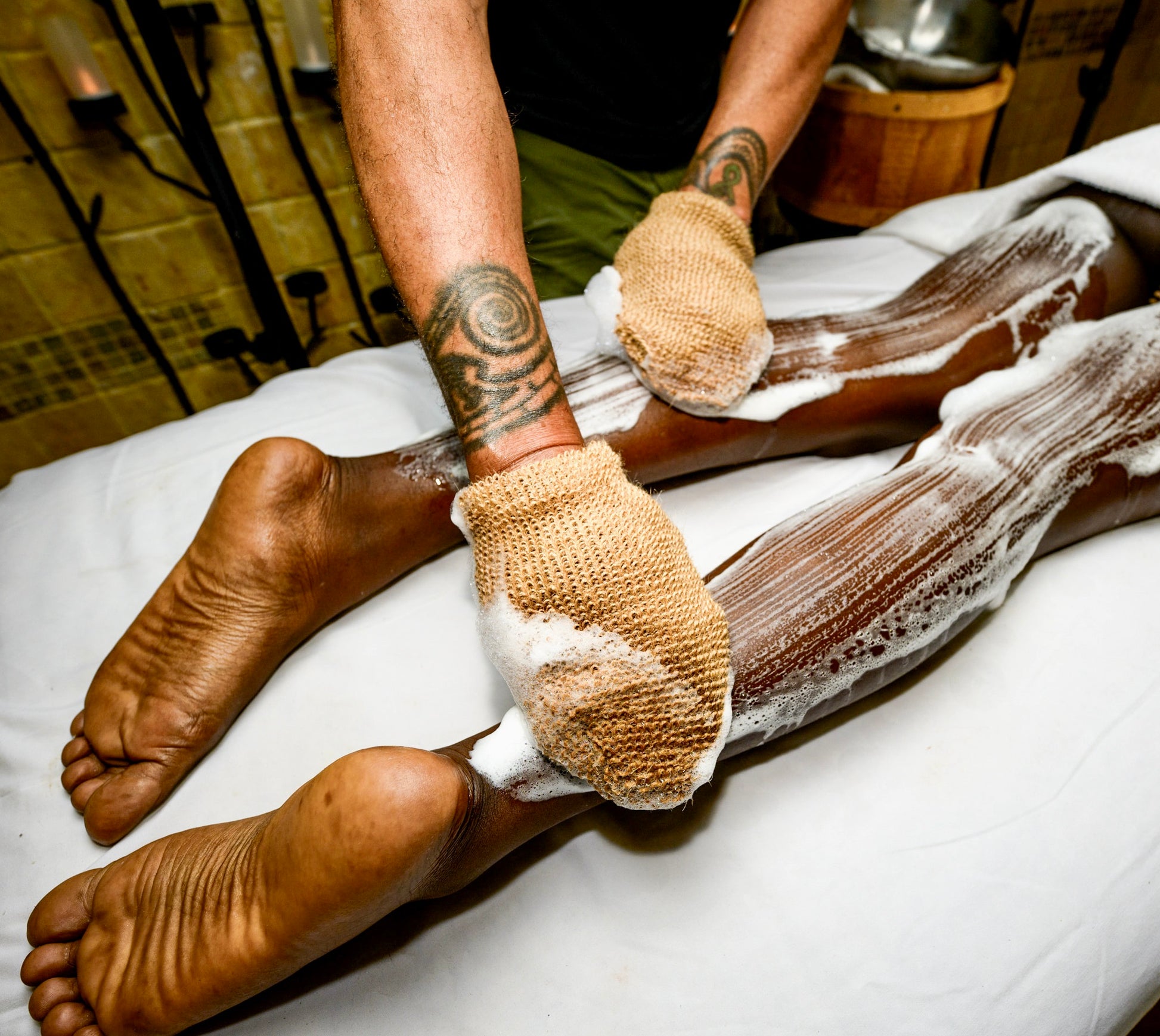 For the adventurous guest we encourage you to start your spa experience with a schvitz using our cedar sauna in preparation for this ancient exotic treatment. Wearing a modest garment or loin cloth, you get to relax into a sweat letting us do the rest! We lather you up and rub you down, using our own brooklyn made castille soap. This is a truly cleansing and purifying treatment for mind, body and soul. For a little extra, we’ll treat you to a deep tissue massage which is sure to further enhance your total spa experience with us!